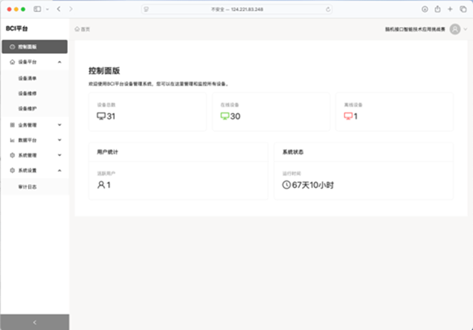 控制面板监控平台设备状态,以及用户数量。