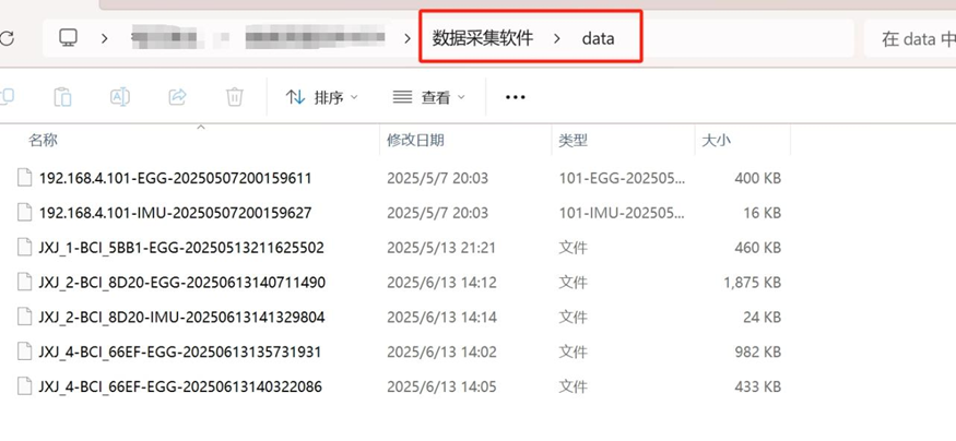 蓝牙: - 设备开机并正常佩戴 - 搜索设备进行连接配对;  - 进行阻抗检测,确保所有通道连接情况良好 - 进行数据采集采集,实时查看分析数据,数据会同步上传至服务器     - 停止采集,数据会自动保存至软件安装目录data文件夹内  - 使用本地数据分析,将保存数据导入并回放 本地EEG数据回放  本地IMU数据回放